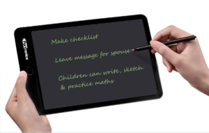 RuffPad 10 is a LCD Drawing Pad which can be used for multiple activities like: as a Writing Pad, notice or memo pad, reminder and to-do list pad, play games like noughts and crosses or tic-tac-toe, kids doodle board cum handwriting practice cum math practice pad.