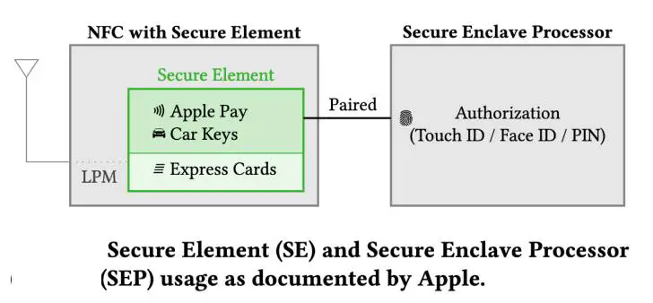 When entering the “power reserve” Low Power Mode (LPM), the process of shutting down iOS takes advantage of the fact that Bluetooth, Near-Field Communication (NFC), and Ultra-Wide Band (UWB) chips continue to operate while iOS is turned off.