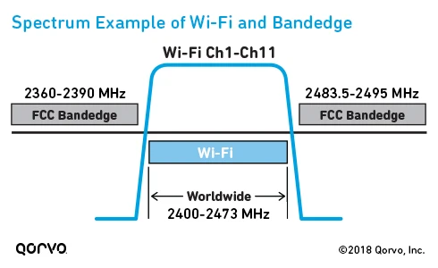 In the United States, the Federal Communications Commission (FCC) requires that most RF devices undergo testing to demonstrate compliance to FCC rules. They enforce strict band edges by requiring steep skirts on the lower and upper Wi-Fi frequencies, to help with coexistence with neighboring spectrum.