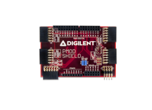 The shield has five 2×6 Digilent Pmod connectors, one 2×4 I²C connector and optional pull-up resistors for the I²C bus.