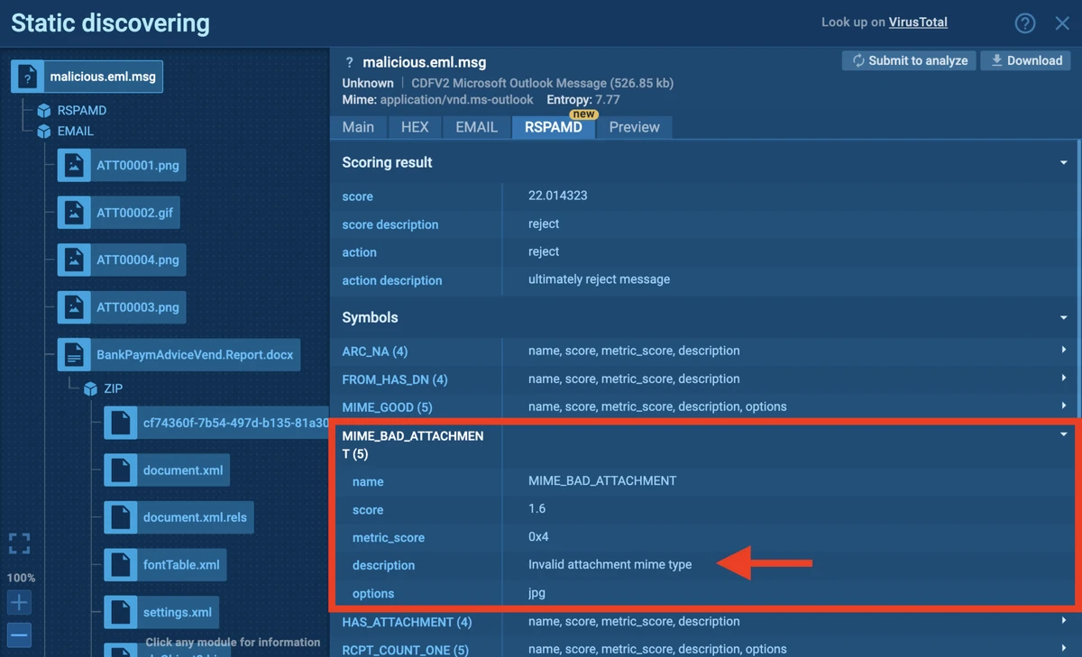 The integration of RSPAMD into ANY.RUN’s Static Discovering feature introduces several innovative functionalities: