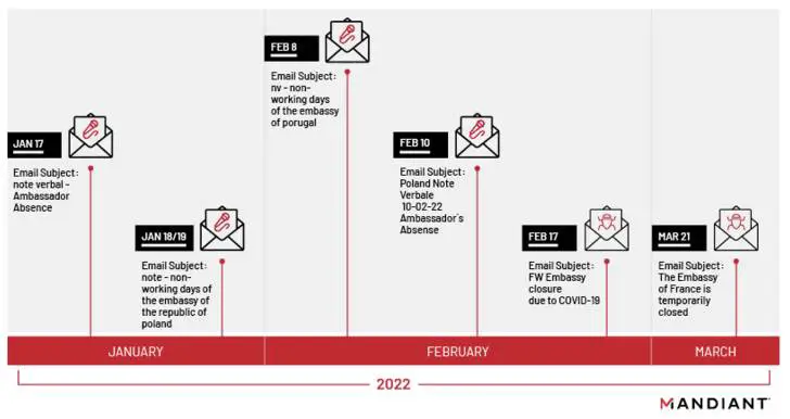 While the cybersecurity firm, Mandiant suspected that APT29 targeted large lists of recipients listed publicly by embassy personnel as points of contact.