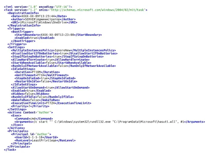 An internal queue for commands and results resides in the Windows registry, encrypted with AES using the %MACHINEGUID% value as the key. Persistent is achieved through a dropper that creates a scheduled task or a registry entry under the “Run” key.