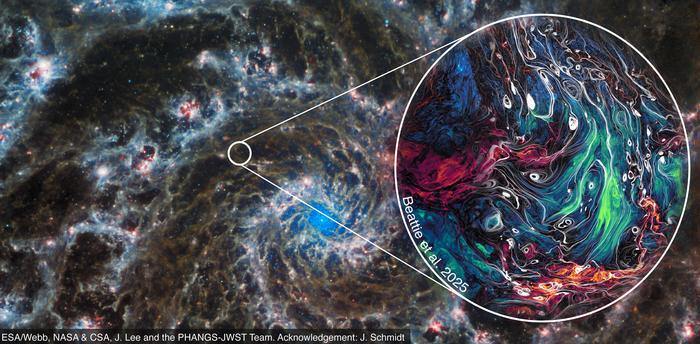 ESA/Webb, NASA & CSA, J. Lee and the PHANGS-JWST Team; Acknowledgement: J. Schmidt; Simulation: J. Beattie.