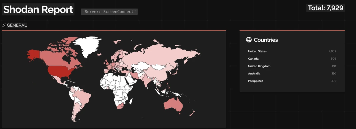 Shodan has reported that over 7,900 servers that are connected are running versions of ScreenConnect that are vulnerable.