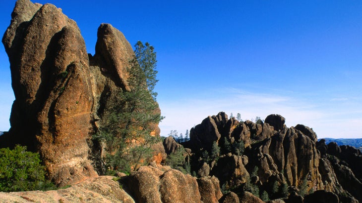 Start from the Bear Gulch Day Area. Head south towards Bear Gulch Reservoir, then turn right at the first junction .2 mile from the trailhead. Turn onto the Rim Trail at the next junction, then take a left on the High Peaks Trail .4 mile after that. From here the path begins to climb into the park’s namesake spires, gaining 850 feet over 1.5 miles. Turn right at the Scout Peak junction, then head into a narrow stretch of trail carved straight from the rock. Keep an eye out above for the 9.5-foot wingspan of the California condor; this park was one of their main reintroduction areas from the captive breeding program. Stay right at the junction with Tunnel Trail, then turn right onto Condor Gulch Trail and descend 1.7 miles back to the parking lot.
