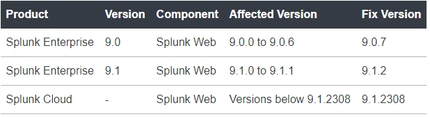 It is recommended that users update to Splunk Enterprise version 9.0.7 or 9.1.2.