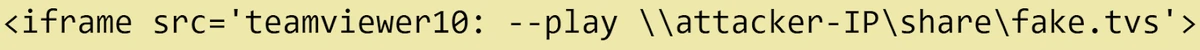 “An attacker could embed a malicious iframe in a website with a crafted URL () that would launch the TeamViewer Windows desktop client and force it to open a remote SMB share.</p>”