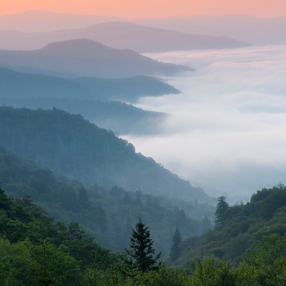 What will you find? In the park’s higher elevations, peregrine falcons soar over 6,000-plus-foot Appalachian peaks, and blooming rhododendrons decorate mountaintop balds. Waterfalls careen from rocky points, feeding streams full of salamanders and native brook trout. The lowland hardwood forests provide wild habitat for black bears, saw-whet owls, and elk. The Smokies are a beloved refuge for hundreds of species—hikers included.