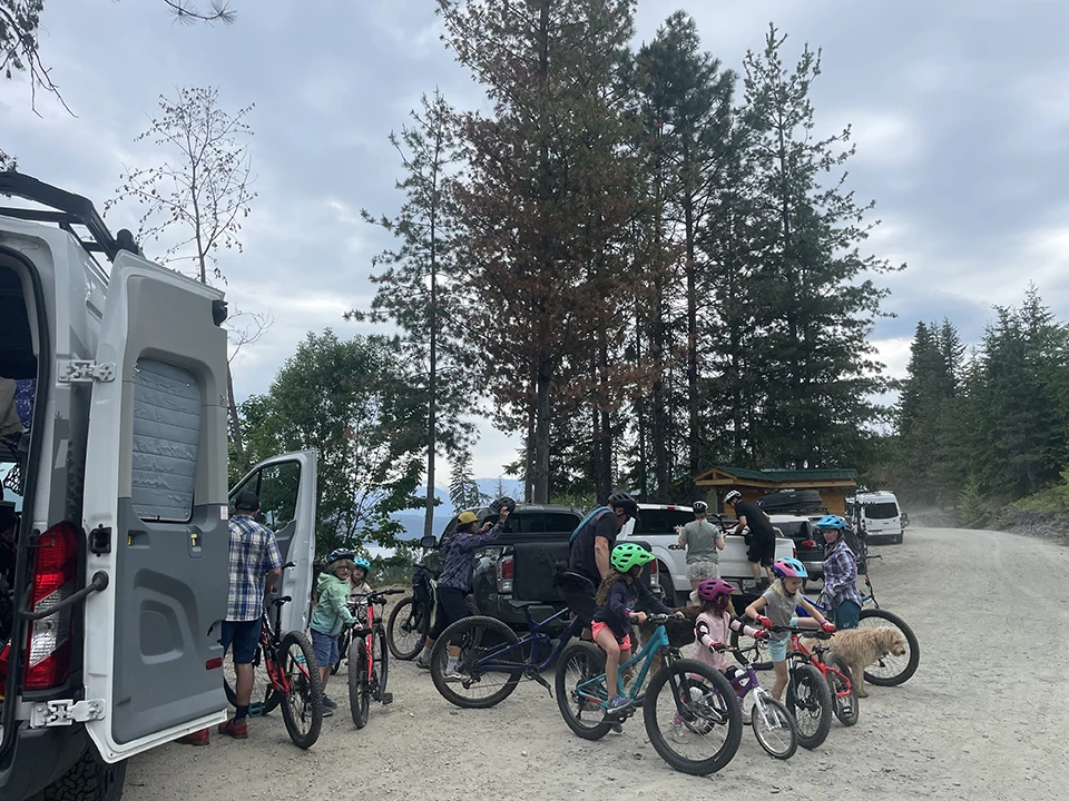 The next day we made the short drive north to the relatively new biking trails and pump track at the Mt. Abriel Recreation Area. Immediately after climbing out of the van, we made friends with a few other families from Rossland, and they invited Remi to head off with them to the pump track while we finished packing up. Once we found and joined the group of parents and kids, we spent the next several hours on the pump track and then hiding under one of the picnic shelters during occasional downpours. Once the rain let up, we pedaled along several sections of fun and flowy green and blue trails, passing and being passed by dozens of other parents and kids. There were many more miles of trails for all abilities at Mt. Abriel, but for us it was time to split for our next stop.