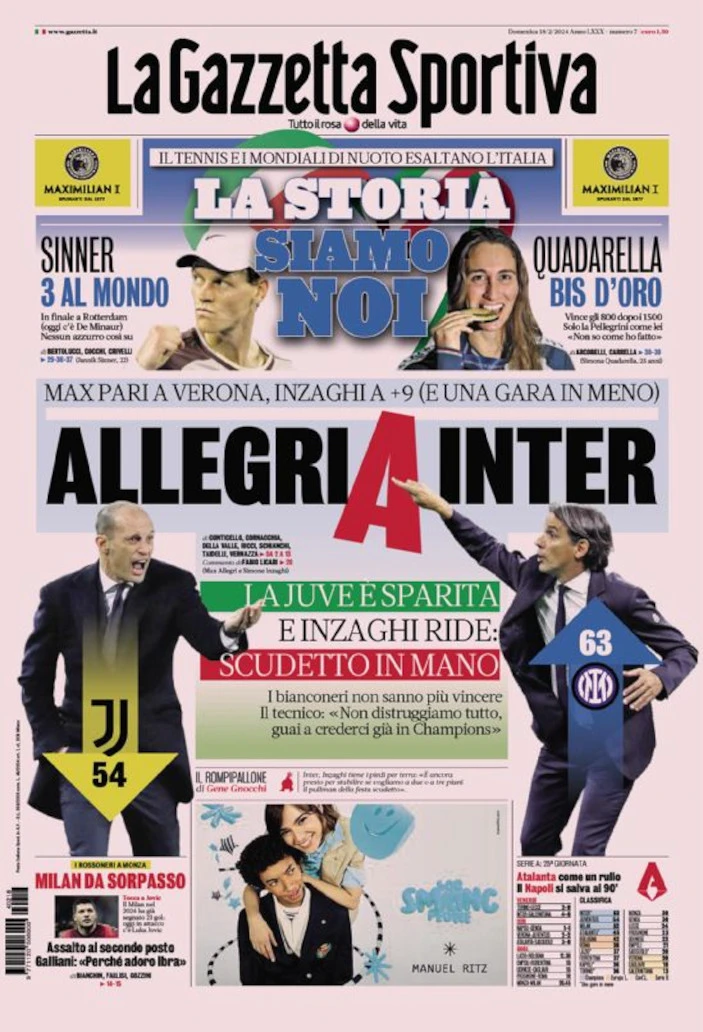 Today’s Papers – Allegri makes Inter happy, Juve disappear, Napoli are no more