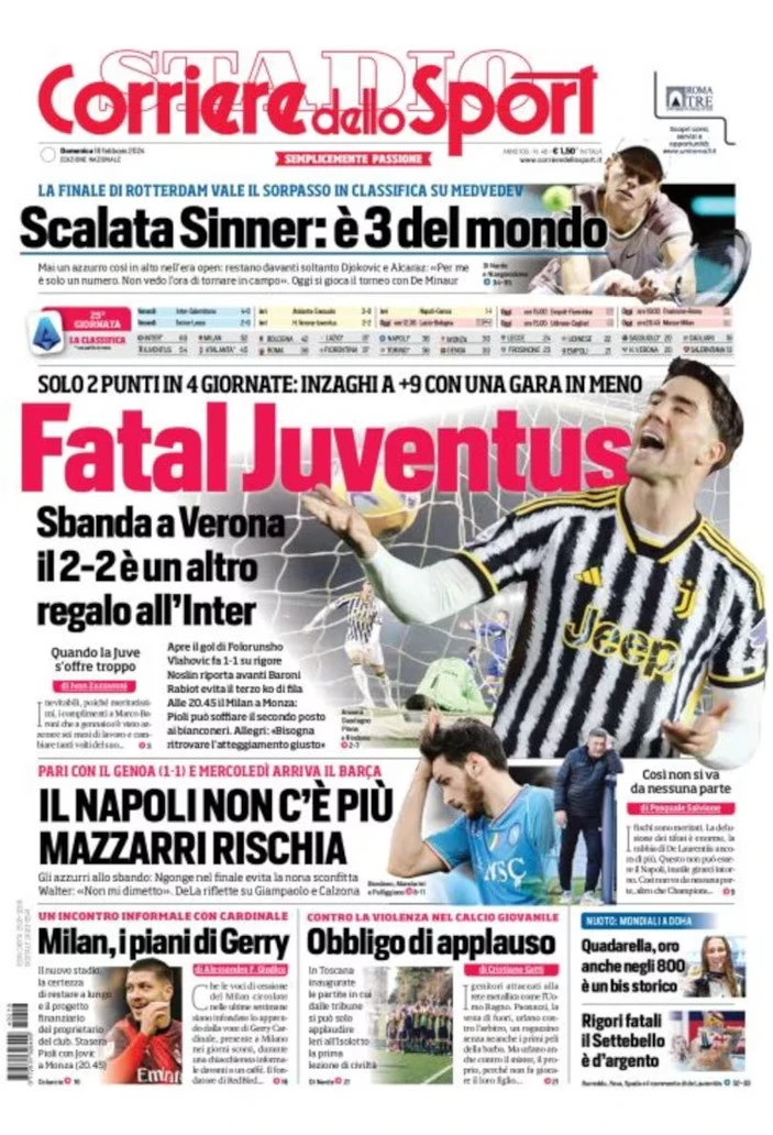 0 thought on “Today’s Papers – Allegri makes Inter happy, Juve disappear, Napoli are no more”