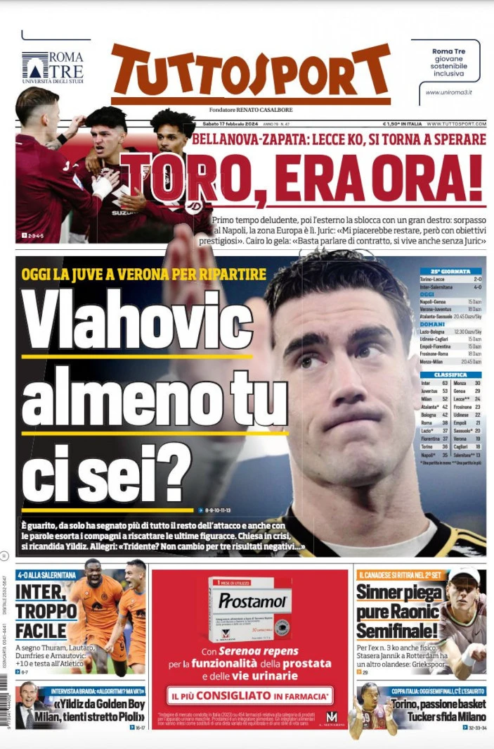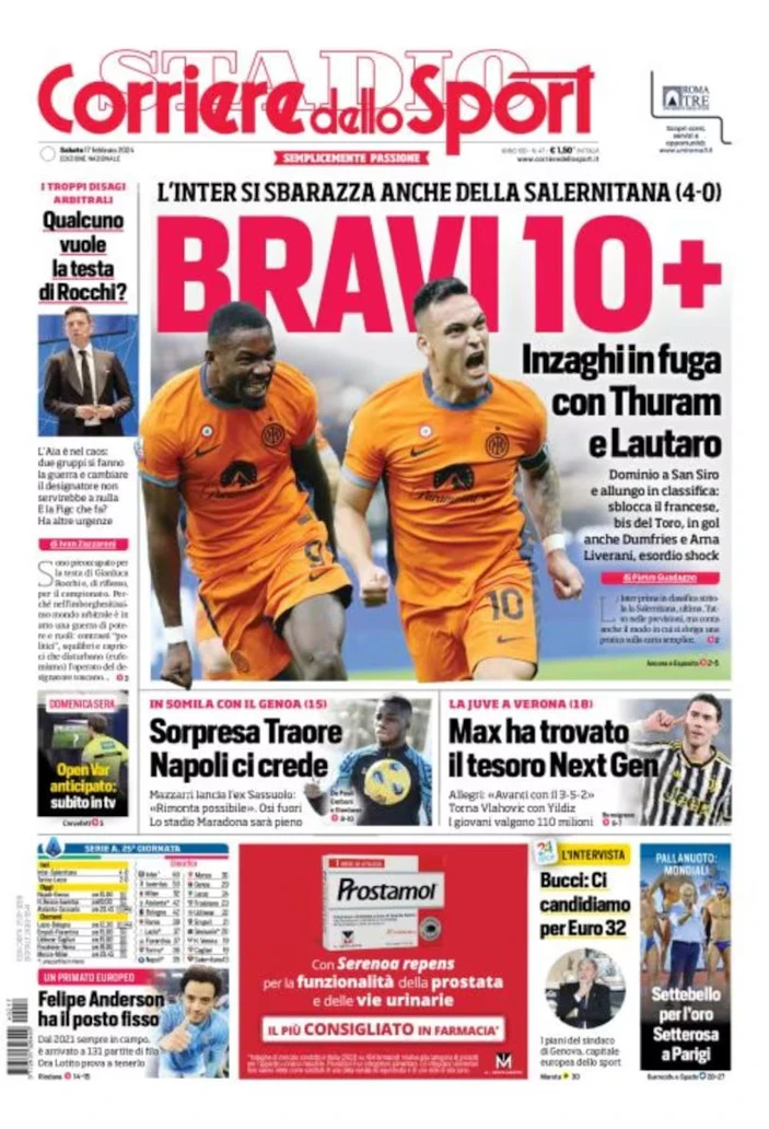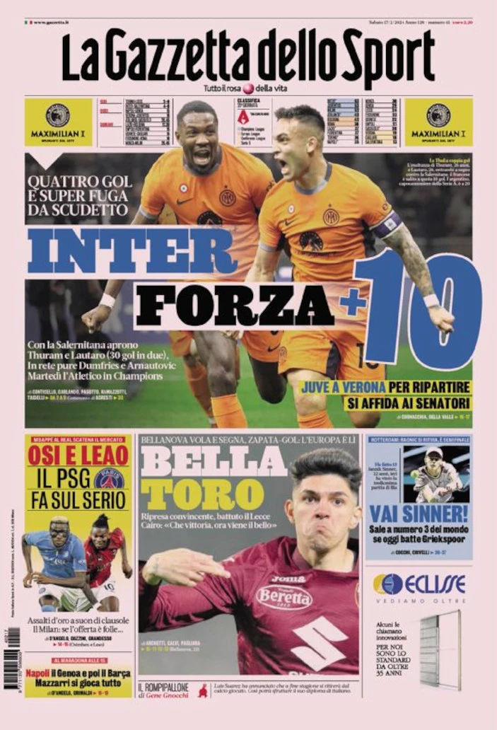 Today’s Papers – Inter Force 10+, Napoli believe, Juve call Vlahovic
