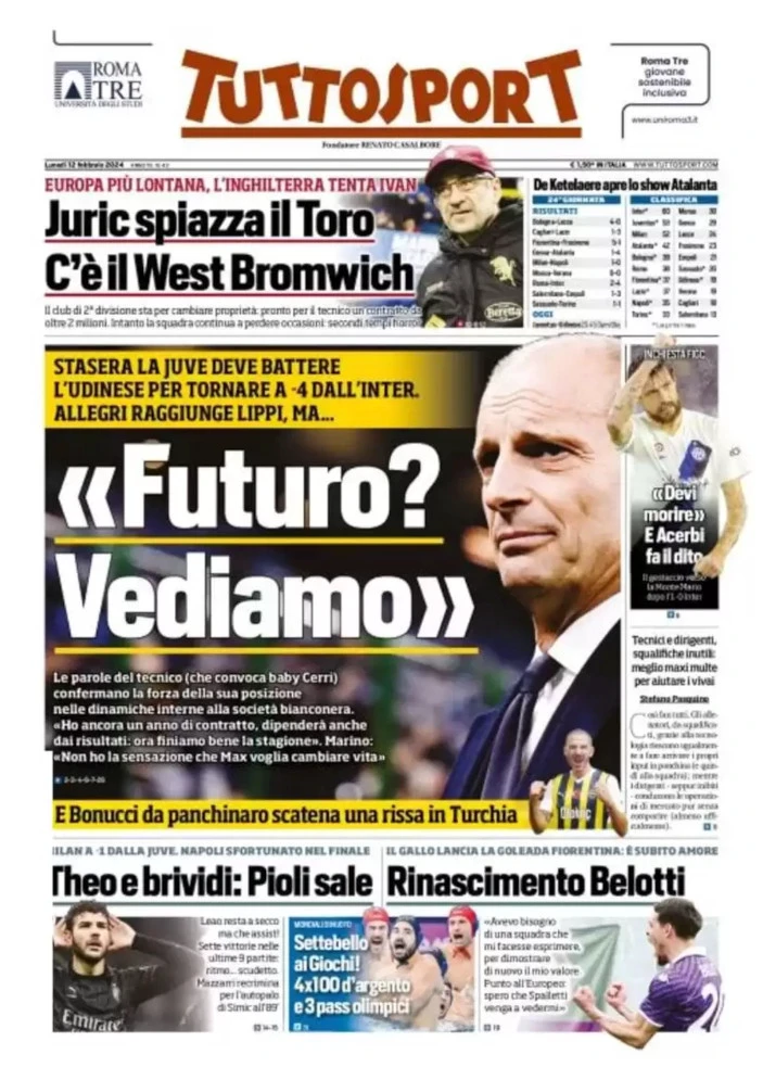 Today’s Papers – Milan beat Napoli too, Allegri doubts Juve future