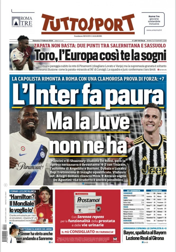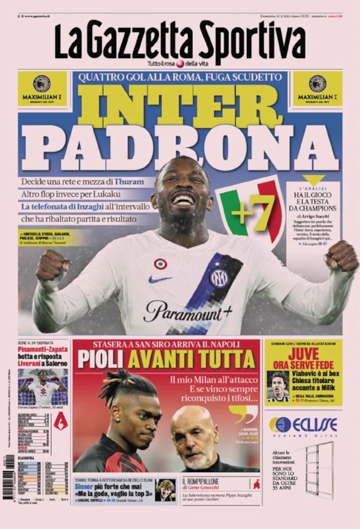 Today’s Papers – Unstoppable Inter overturn Roma, Immobile history