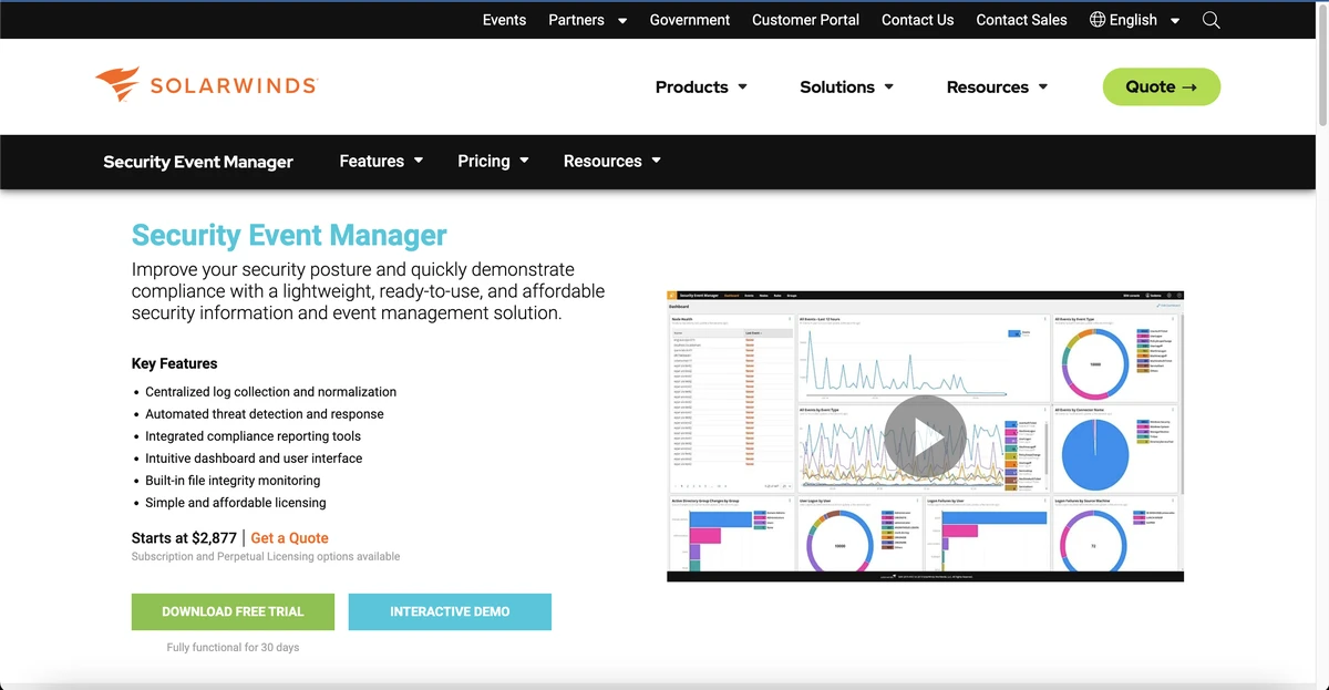 A virtual appliance for security information and event management (SIEM), SolarWinds Security Event Manager improves the efficiency of network administration, management, and security policy monitoring, and it also enhances the functionality of existing security solutions.