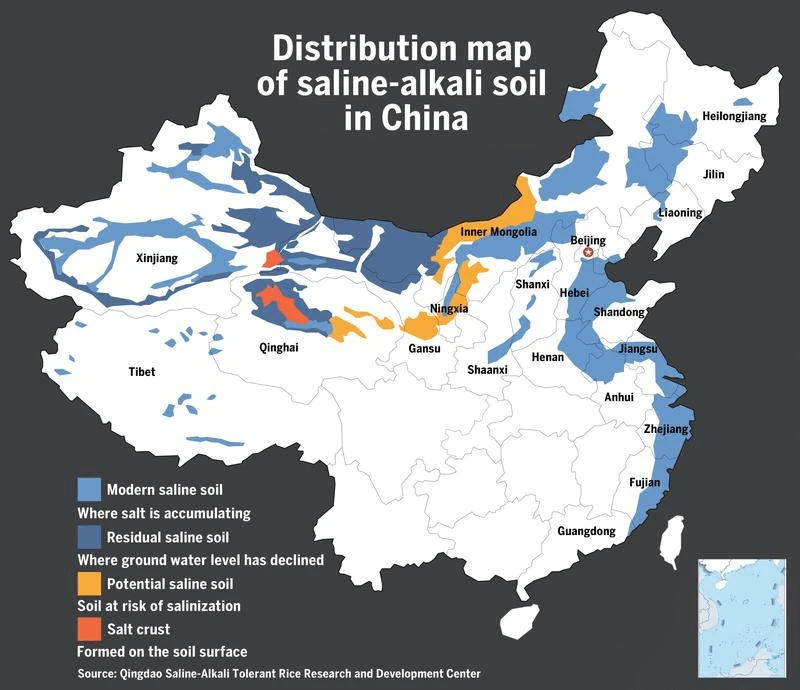 As of 2021, China had around 99.1 million hectares of saline and alkali soils.
