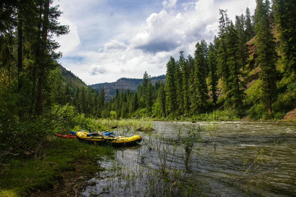 The Grande Ronde flows through the Blue Mountains in an area of mixed conifers. The river canyon is fairly dry, and it has plenty of benches of Ponderosa pine that make great camp spots. The river has a few class II rapids and one class III called Red or House Rock, which is probably the shortest and most straightforward class III I’ve ever encountered. It’s easy to spot due to the house-sized rock that narrows the channel and creates the rapid, and a quick scout will show you how to navigate it safely to the left of the boulder. At normal flows none of these rapids would flip a proper whitewater raft, but during spring run-off you will need expert skills to stay safe.