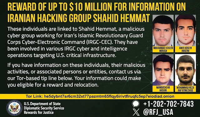 The reward focuses on the Shahid Hemmat group members operating under Iran’s Islamic Revolutionary Guard Corps Cyber-Electronic Command (IRGC-CEC).