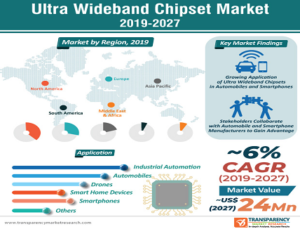 Transparency Market Research delivers key insights on the global ultra wideband chipset market. In terms of revenue, the global ultra wideband chipset market is estimated to expand at a CAGR of ~6% during the forecast period, owing to numerous factors, regarding which TMR offers thorough insights in its report on the global ultra wideband chipset market.