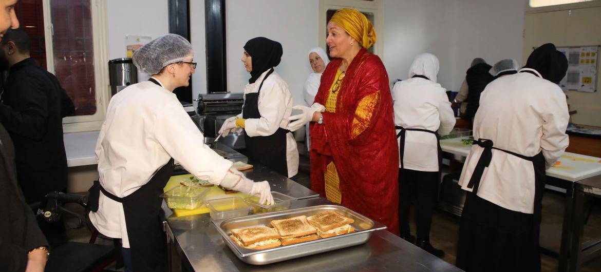 The Deputy Secretary-General listened to the challenges facing women and girls with disabilities in Lebanon, and how they are coping under the multiple crises affecting the country. She then took part in a hands-on meal preparation.