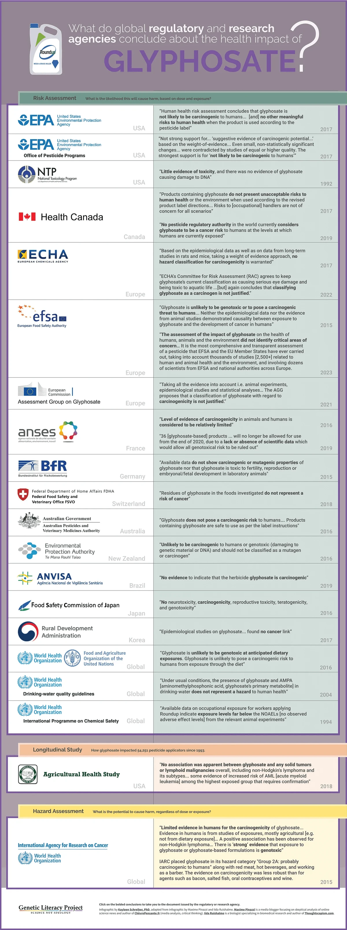 Infographic: Global regulatory and health research agencies on whether glyphosate causes cancer