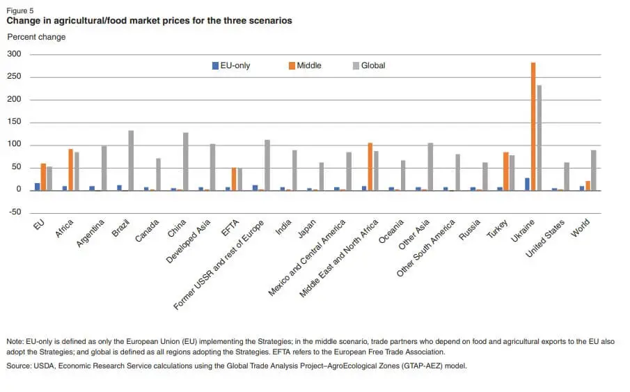 The European Union unveiled its “Farm to Fork” strategy at the beginning of the COVID-19 pandemic. The plan calls for a significant reduction in synthetic pesticides and fertilizers, as well as an increase in organic farming output. The European Commission, the executive arm of the EU in Brussels, structurally unveils legislative packages that make those plans a reality but have run into criticism from farmers and consumers. When USDA did an impact assessment on the effects of the strategy, it found that agricultural prices would soar between 20 and 53 percent. The EU itself did not present an impact assessment.