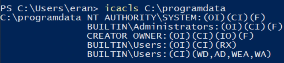Most of the user has both write and delete permission on the base level of the index; it increases the possibility of a privileged right when a non-privileged process generates a new folder in “ProgramData” that could be later obtained by a privileged method.