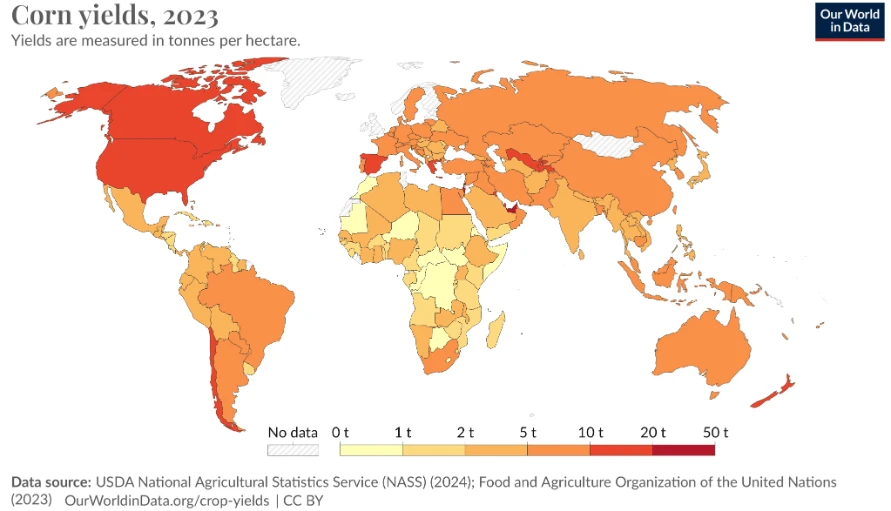 - In Canada, despite its challenging geographic location north of the corn belt, corn yields have increased to an estimate 163-167 bushels per acre. Soybean production is up 12 percent from [2023].