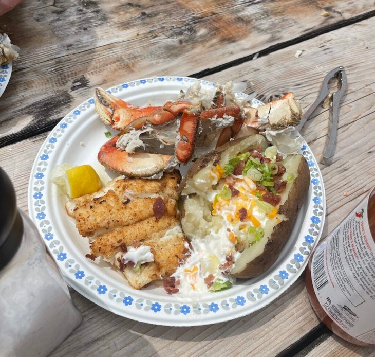 One of the most unique things about the WCT is the floating crab shack at Nitinaht Narrows where hungry hikers can indulge in fresh-caught seafood. The steep prices are worth it for the novelty, but be prepared to wait. We showed up just in time for lunch with almost 10 miles already under our belts—then waited an hour and a half for our food. Save a snack for the wait, or at least stay patient and enjoy a cold drink and the photo albums lining the shack walls. Showing up earlier or later in the day might have helped, too.
