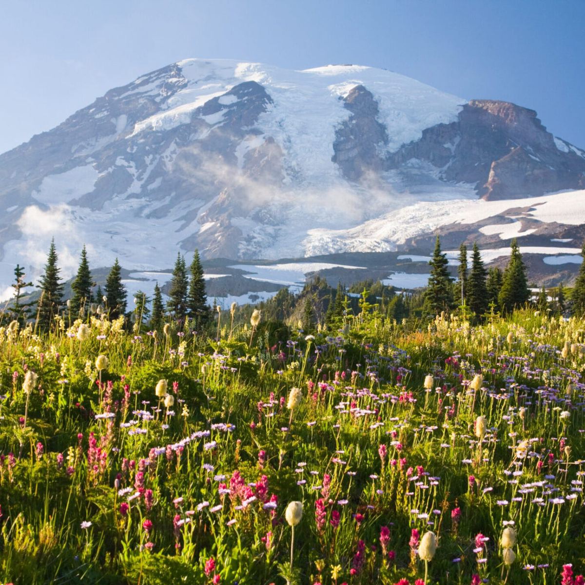 “Mt. Rainier National Park is where I can experience so much contrast. Old growth forest and flowery meadows. Shy baby bears and snack stealing gray jays. Paved paths and obscure climbing routes. Being able to see the lights of Pugetopolis while camping high on a glacier. And the skiing is good in July!”