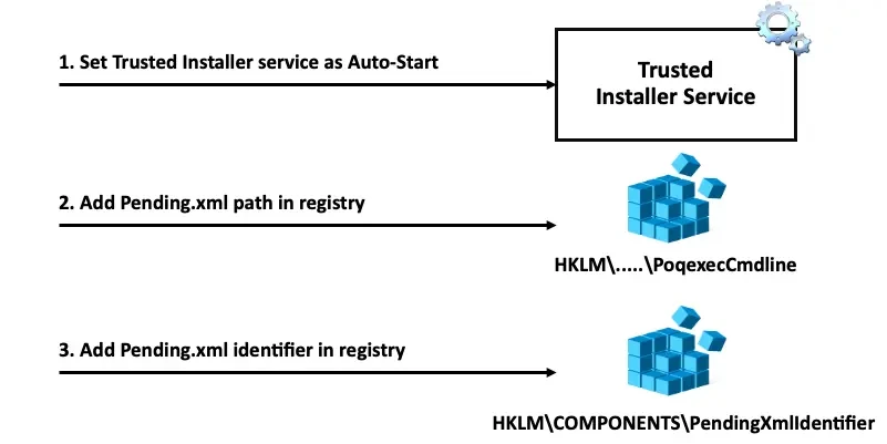 - Add pending.xml identifier in registry did not have Trusted Installer enforced.
