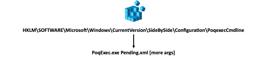 On further research, the action list path in the registry had an interesting key named “PoqexecCmdline,” which holds the executable that parses the list and the list path. Further, it was also discovered that the Trusted Installer was not enforced on this key. This can be used to control all the update actions.