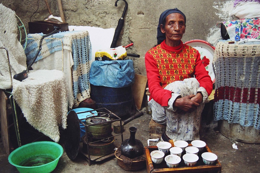 A trader affected by leprosy waits for customers in Addis Ababa, Ethiopia.