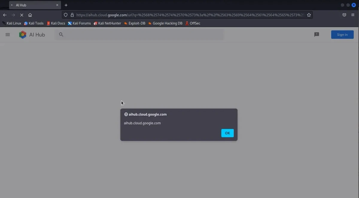 Further investigation revealed that the XSS vulnerability was not isolated to a single URL but affected all URLs from the aihub.cloud.google.com domain when the ‘q’ parameter was appended.
