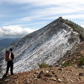 At the far side of the Mount Sheridan Hut, make a short descent toward a picnic table offering a perfect place to refuel after the arduous climb. Follow the same route back to the trailhead.